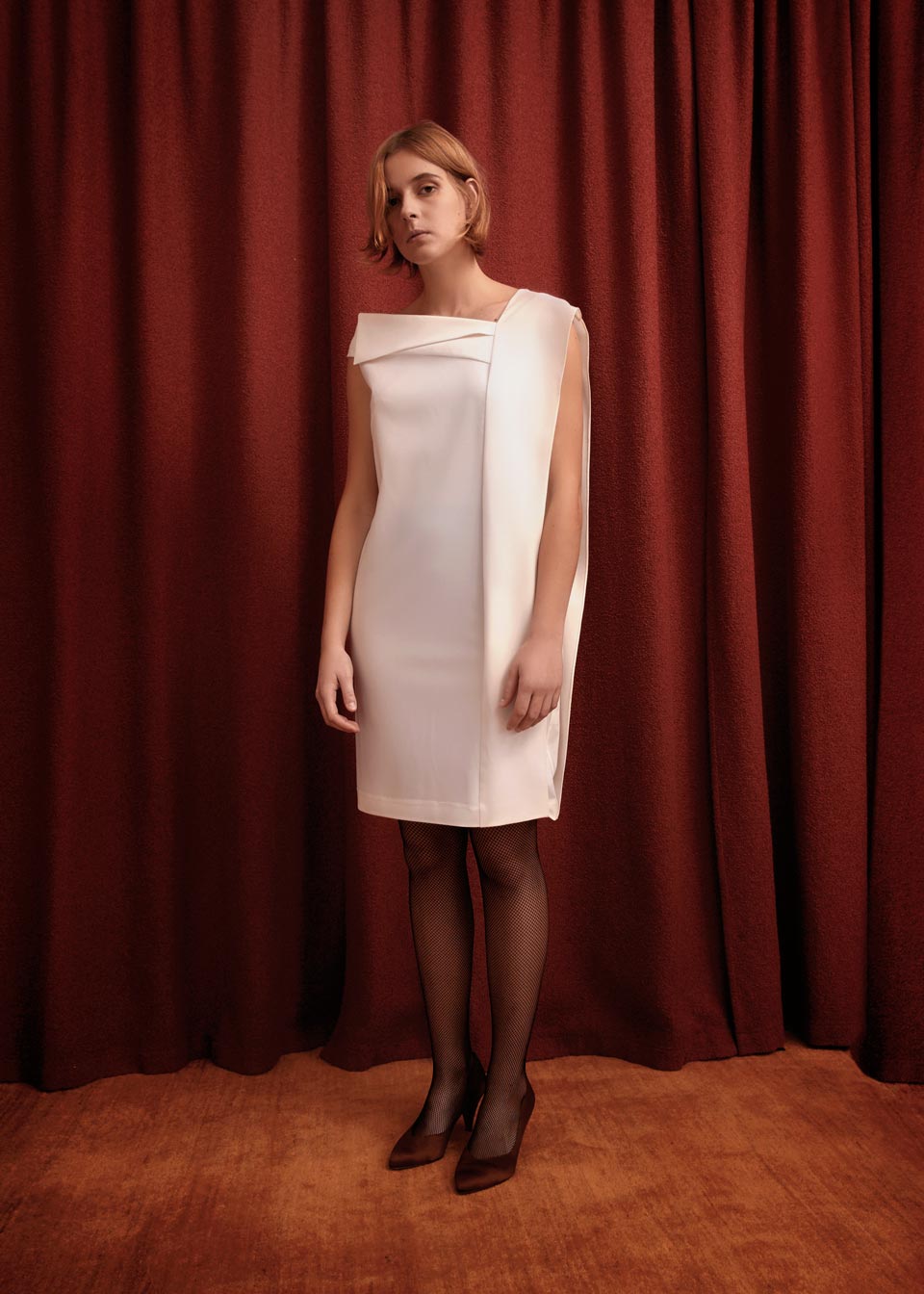 Comme toujours dans son œuvre on retrouve cette dualité entre le Ghana et l’Italie, l’Afrique et l’Europe, les couleurs vives, et les motifs audacieux, contrastant avec le chic sobre et intemporel des maisons de couture européennes. C’est d’ailleurs probablement dans une temporalité éloignée que la créatrice a puisé l’inspiration de cette première collection de l’année 2016. Une époque, aux sorties de la guerre, où les femmes balançaient entre une émancipation frémissante, et une certaine retenue bourgeoise, où elles commençaient à oser le pantalon, sans abandonner les robes longues, où les mains étaient encore fréquemment gantées…